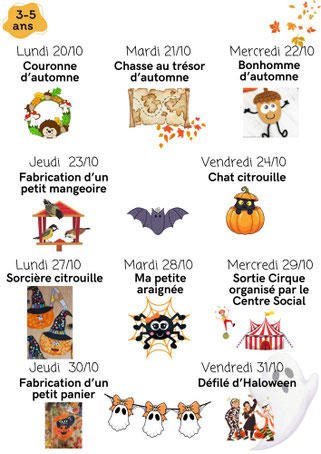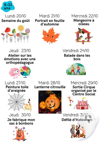 PROGRAMME DES VACANCES D'AUTOMNE du 20 au 31 octobre 2025